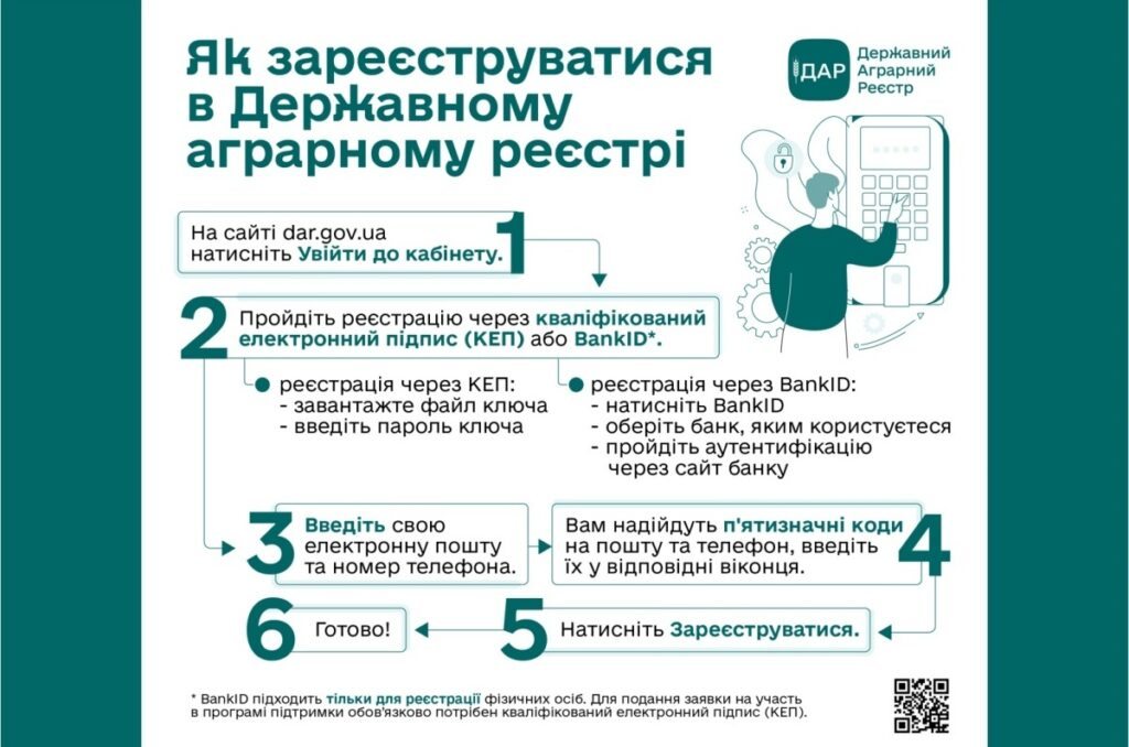 Зверніть увагу, що через BankID створити власний кабінет може лише фізособа. Для того, щоб взяти участь у програмі дотацій заявнику потрібно мати зареєстровану юридичну особу або ФОП та підтвердити це кваліфікованим електронним підписом (КЕП).