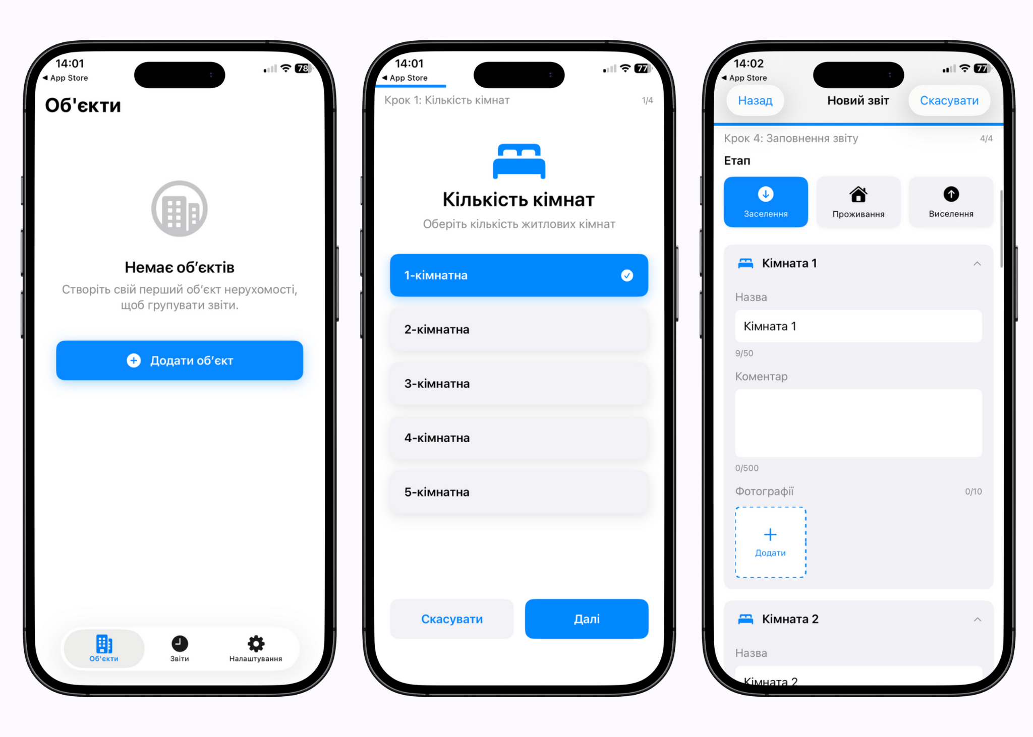Застосунок дозволяє фотографувати стан квартири на різних етапах оренди та зберігати знімки пошкоджень або природного зносу. Мета сервісу – сформувати структурований і юридично значущий фотозвіт про стан житла, який можна використовувати у разі суперечок між орендарем і власником.