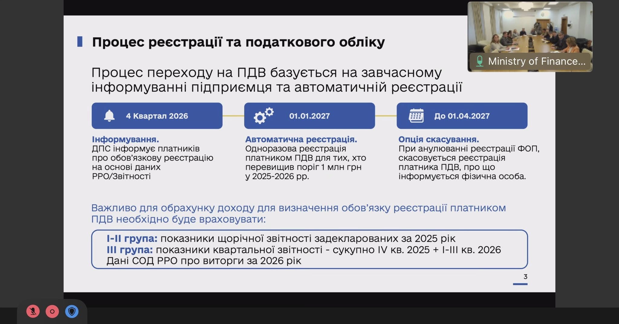 Хоча планувалась зустріч і обговорення, фактично це була презентація від Мінфіну “Трансформація адміністрування ПДВ для спрощеної системи. Від ручного звітування до більшої автоматизації”, – розповіла одна з учасниць зустрічі.