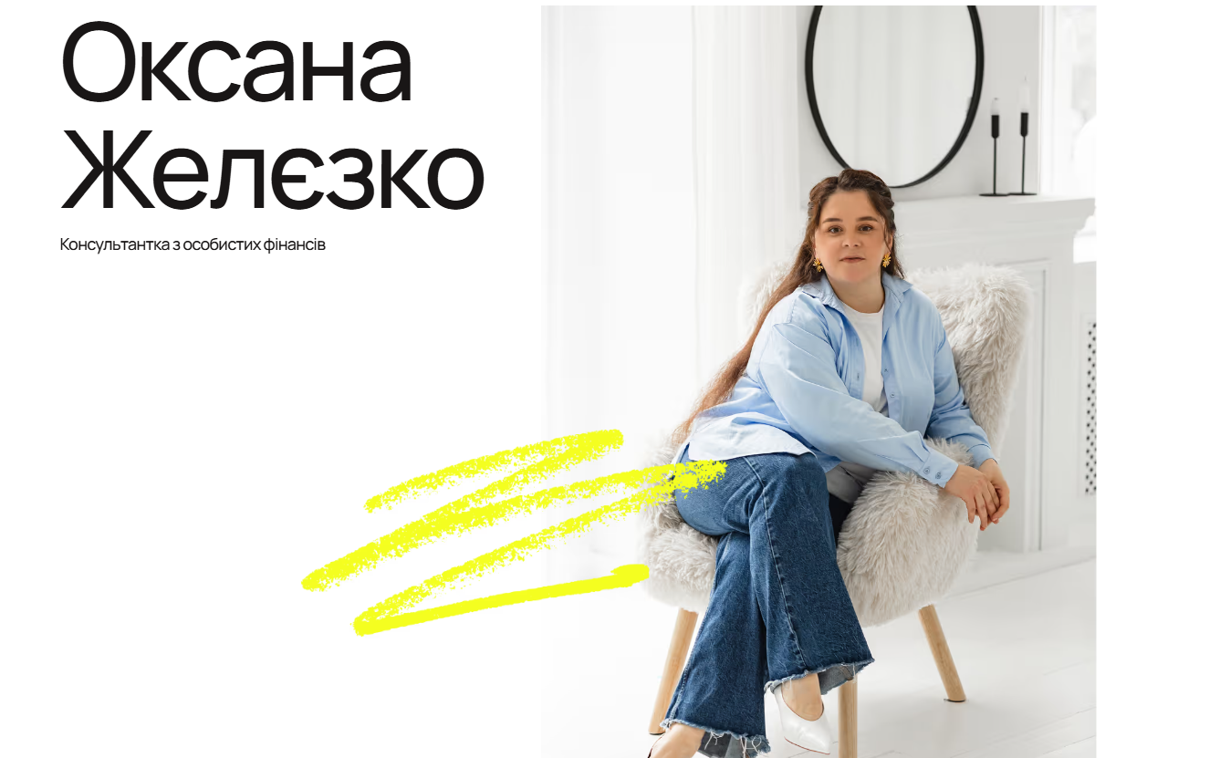 Весь курс складається з 22 занять: лекцій, вебінарів та менторських сесій з фінансовою консультанткою Оксаною Желєзко, яка має понад 14 років досвіду у сфері.