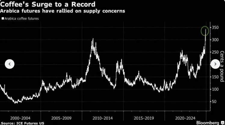 Зерна для кави становлять приблизно 40% від її ціни в магазині. Якщо ціна на сирі зерна арабіки за рік зросла майже вдвічі, то це може змусити виробників підняти роздрібні ціни на каву ще на 15–25%, пояснюють аналітики ING (велика нідерландська фінансова група).