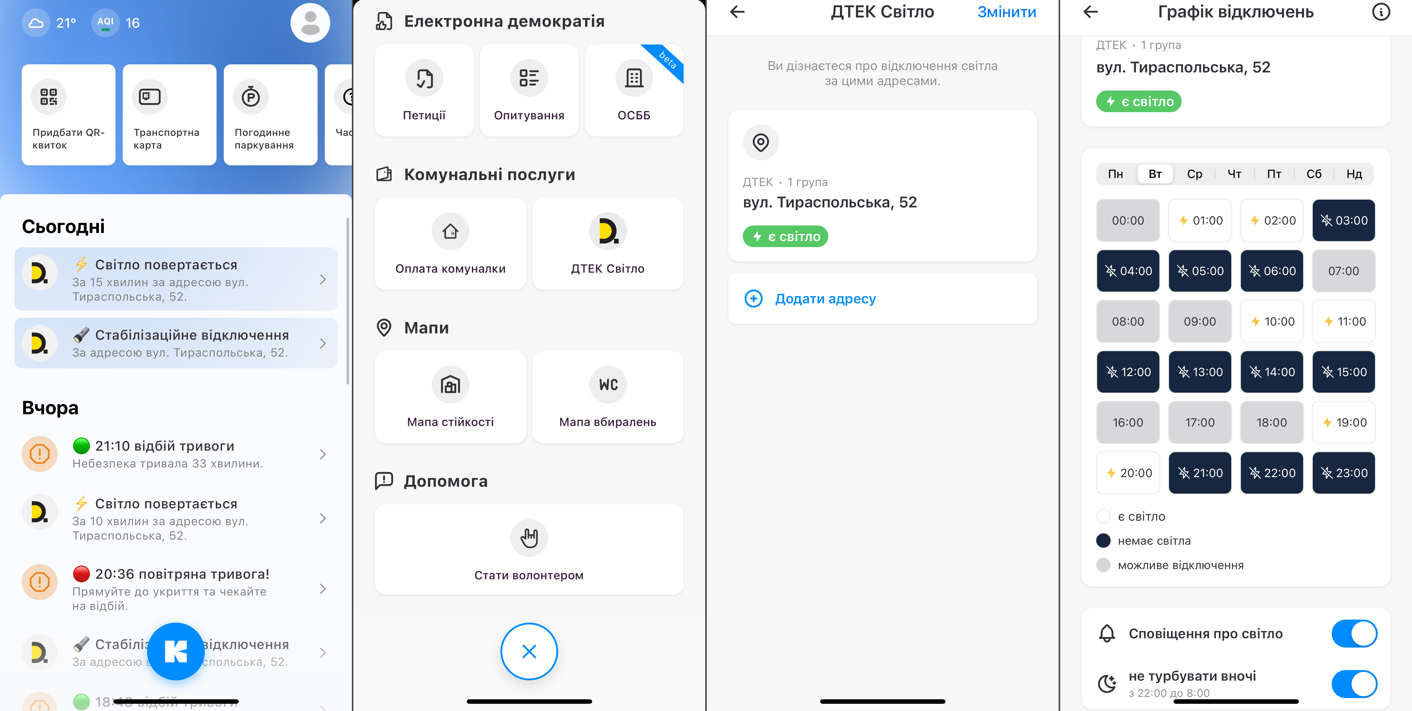 Відстежувати графіки можна в застосунках “Київ Цифровий” та застосунку компанії Ясно – “YASNO Mobile”. Водночас, в “Київ Цифровий” це можна робити будь-хто, а в “YASNO Mobile” (Android | iOS) лише клієнти компанії.
