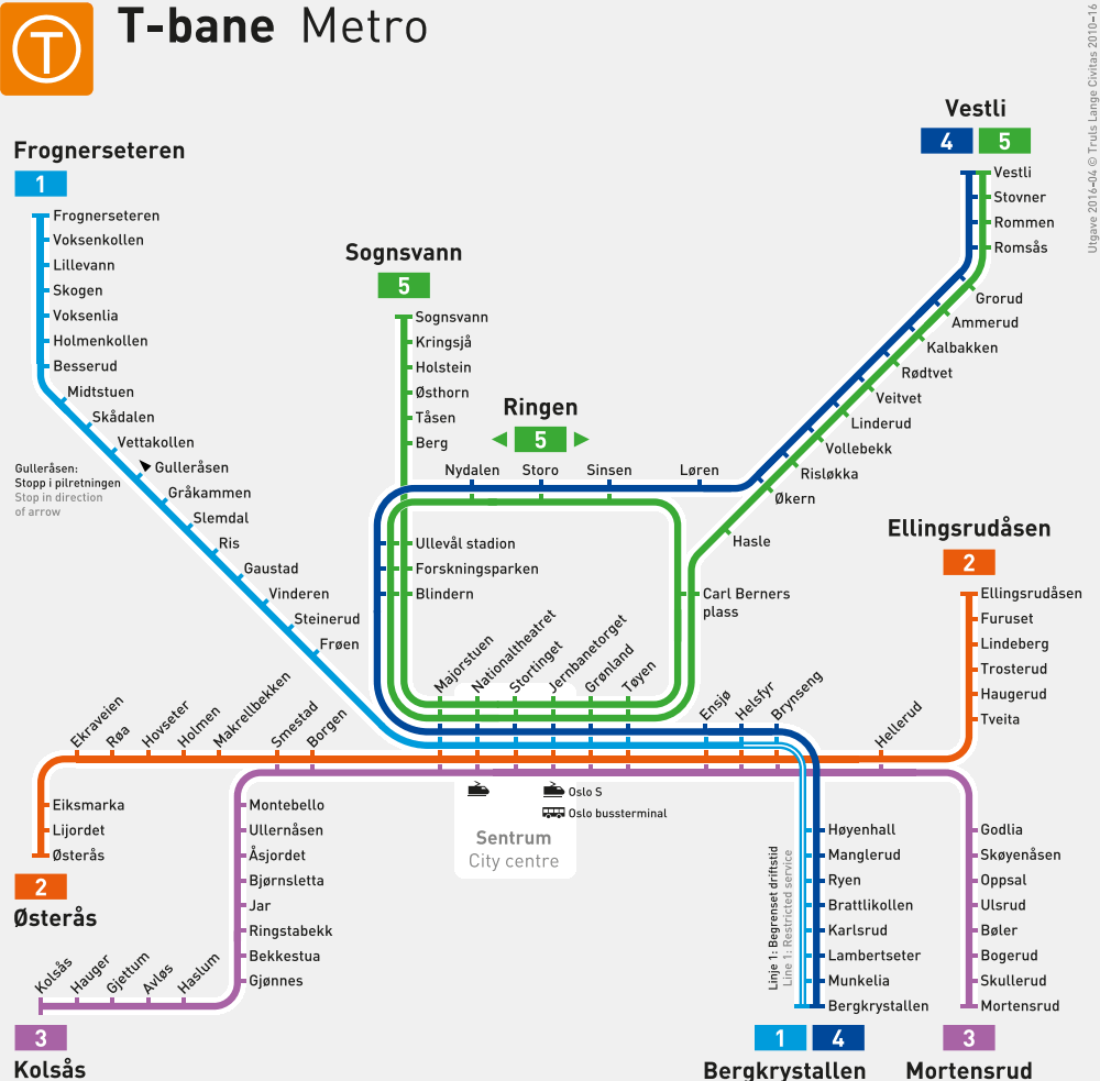 - Jernbanetorget – станція неподалік головного залізничного вокзалу та Оперного театру Осло.