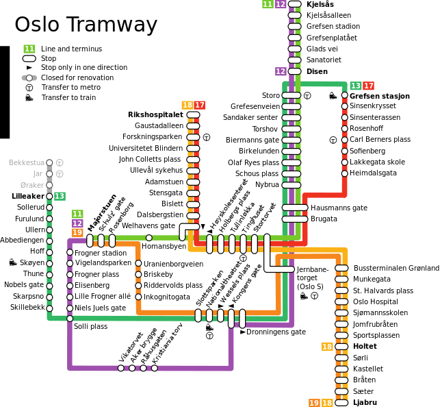 Актуальний розклад всього транспорту Осло доступний на сайті та у застосунку Ruter (Android, iOS).