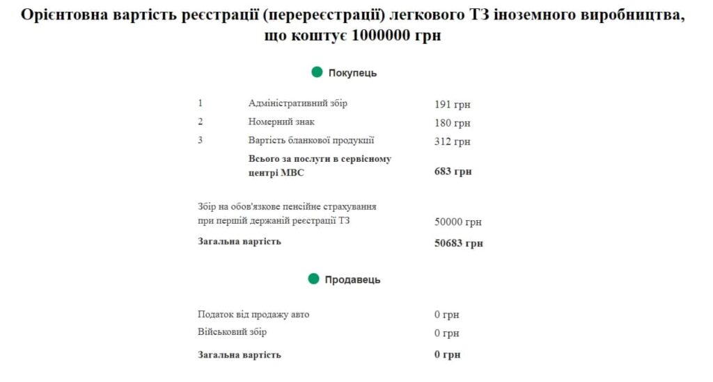 - яку суму доведеться заплатити за послугу сервісного центру МВС в залежності від типу транспортного засобу та країни-виробника;