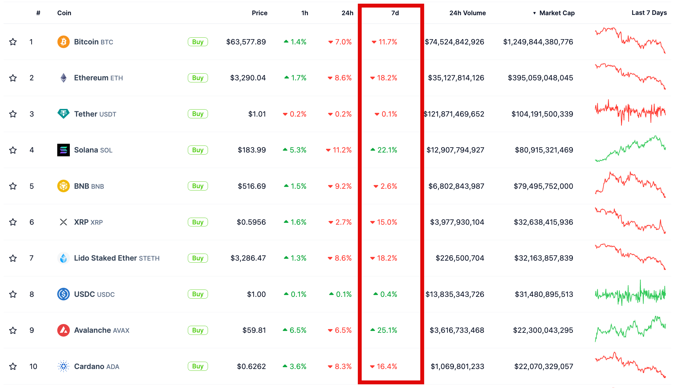 Курс біткоїна після кількох історичних максимумів за тиждень впав на понад 10% і нині торгується за ціною близько $63500. Так само більшість з найбільших за капіталізацією криптоактивів перебуває в червоній зоні за результатом тижня.
