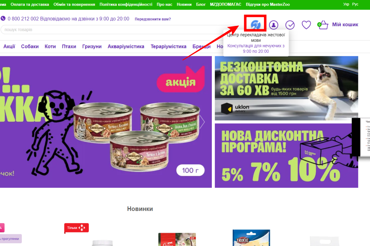 Клієнти MasterZoo відтепер можуть спілкуватись з працівниками інтернет-магазину по відеозв’язку мовою жестів за допомогою відповідного віджета.