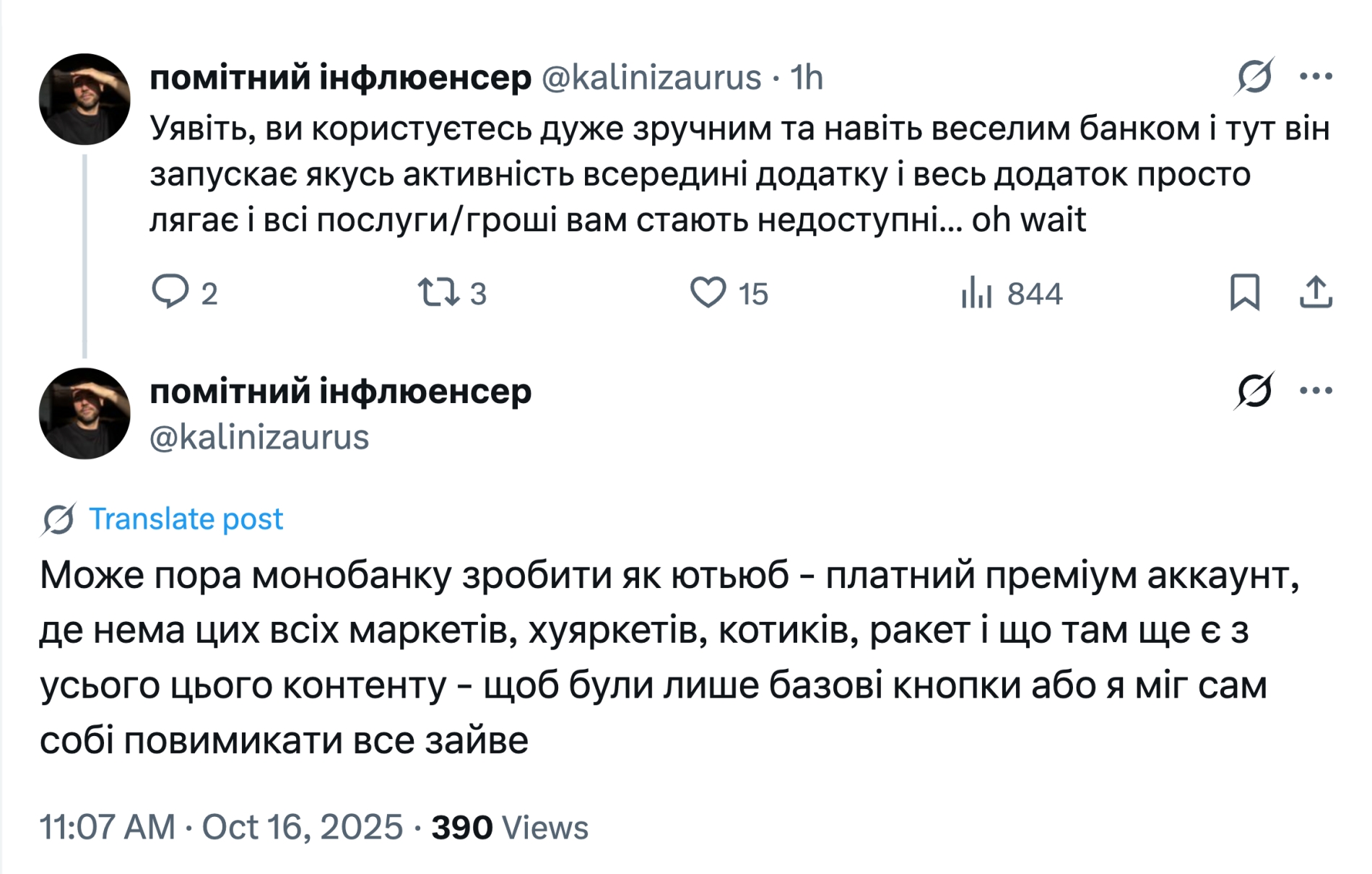Втім, користувачі звертають увагу на інший факт: нині Monobank величезною кількістю додаткових опцій (і подекуди зайвих як з прикладом полювання на лимони) заважає користуватися безпосереднім банкінгом.