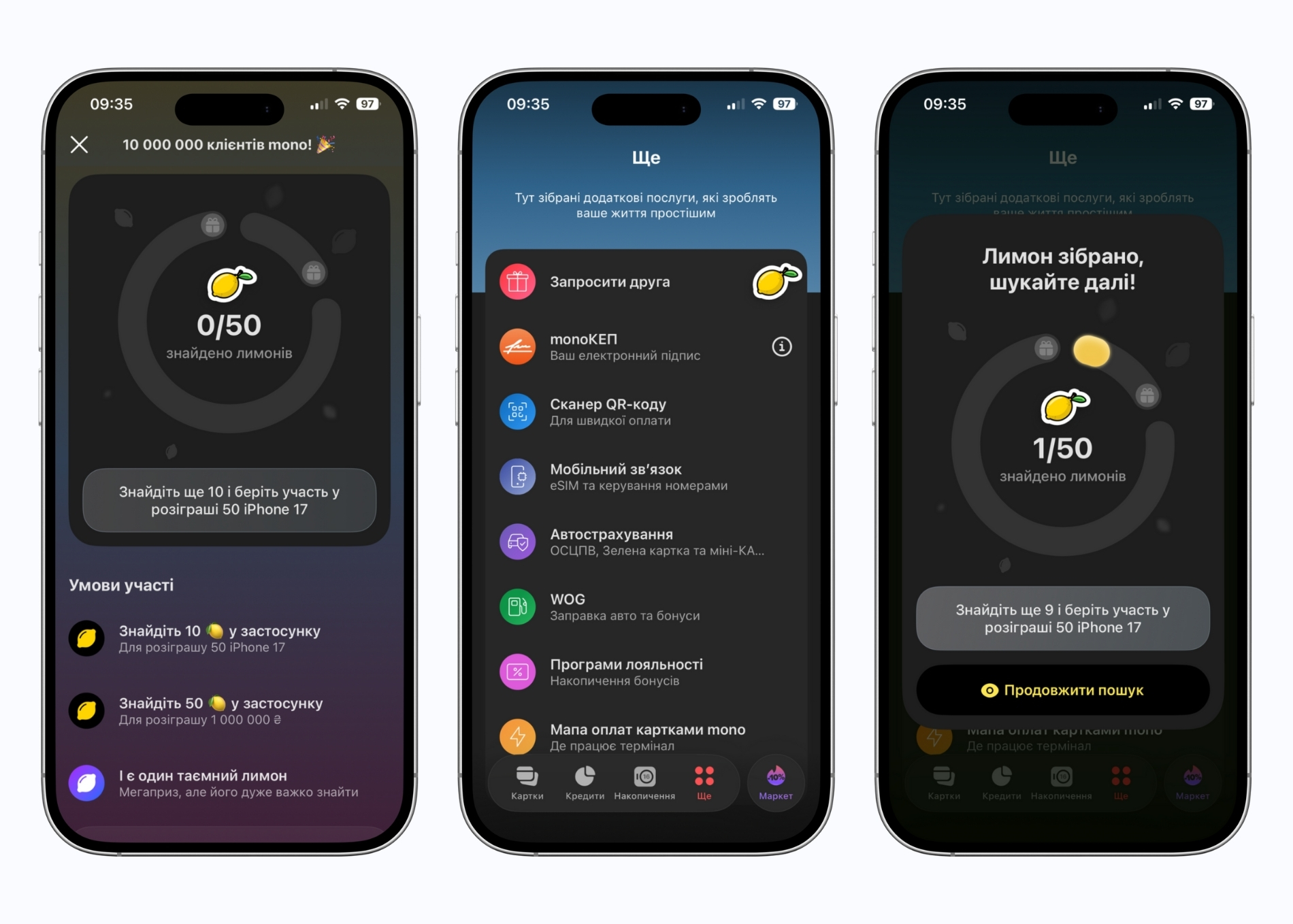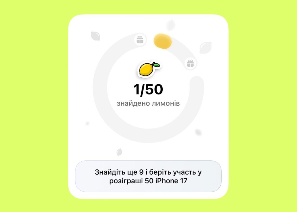 - зібрані 10 лимонів — участь у розіграші 50 iPhone 17 та унікальний скін у застосунку