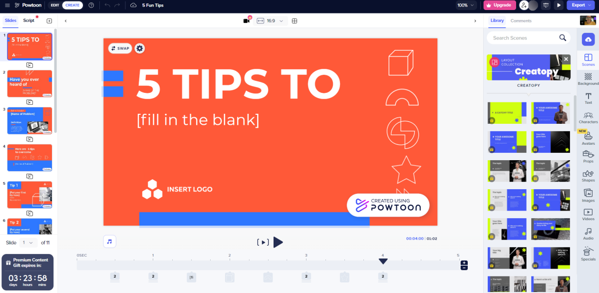 Ця платформа заточена більше для роботи з анімацією. Має багато шаблонів за різними темами, щоправда, більшість з них є платними. Також можна створити власний шаблон з нуля або імпортувати й редагувати іншу презентацію.