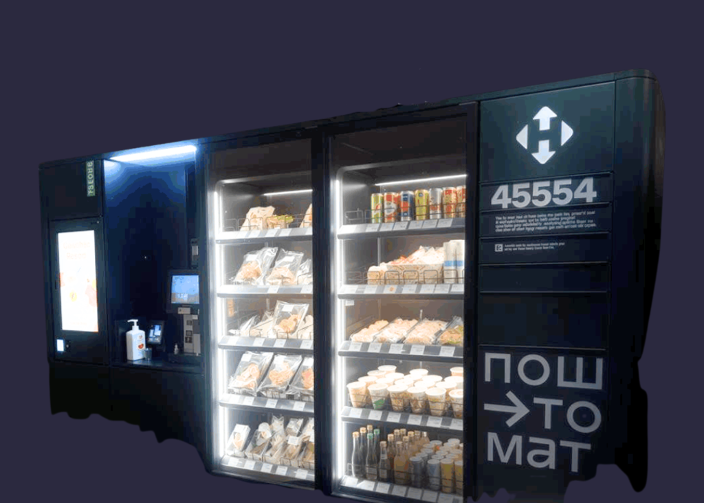 - CONVENIQ (Конвінік) – багатофункціональний осередок, що поєднує поштомат, кавовий автомат і холодильник Grab&Go зі снеками.