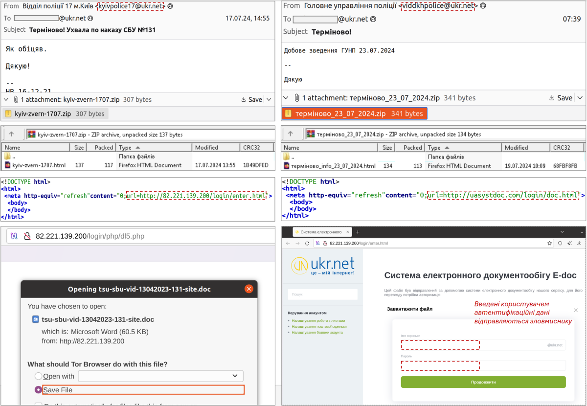 Зловмисники розсилають листи із вкладеннями у вигляді архівів. Після відкриття користувача переносить на фальшиву сторінку UKR.NET та просить авторизуватись у своєму акаунті.