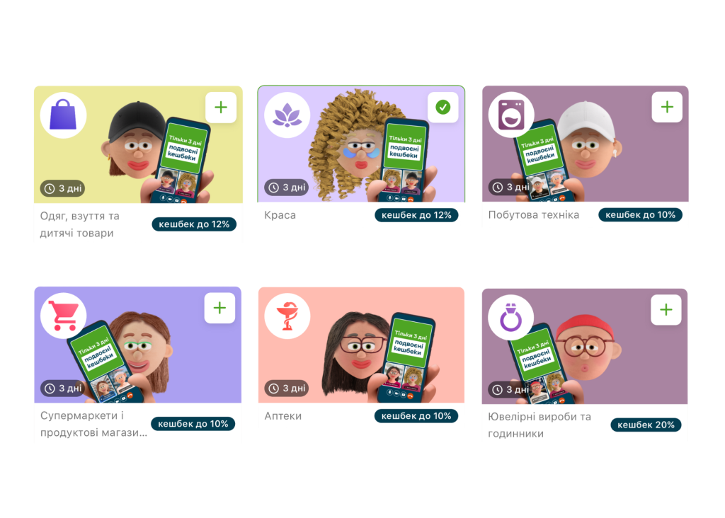 Окрім кешбеку на продукти, салони краси чи одяг і взуття пропонується також кешбек на туристичне страхування і страхування авто “Зелена картка”, кешбек в Comfy, Епіцентр, на купівлю офіційної техніки Apple. Скрізь також по 10%.