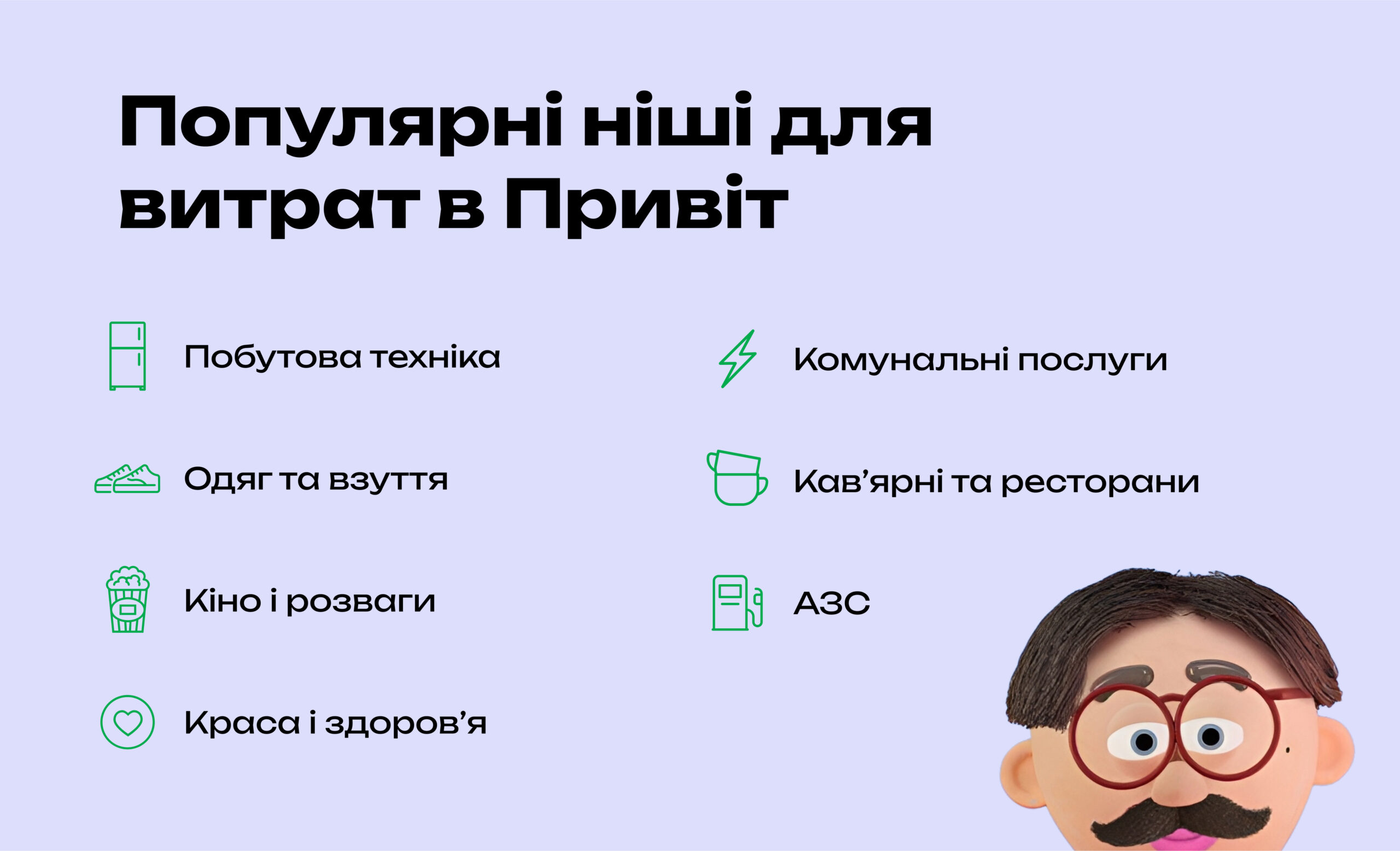 І хоча звичної гейміфікації з щомісячним обранням категорій для кешбеку на витрати “Привіт” немає, кожна пропозиція бізнесу належить до певної ніші.