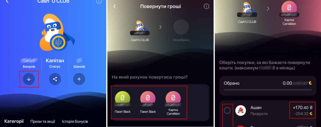 Увесь кешбек нараховується щомісяця на бонусний рахунок Cash’u Club і відображається, як акційний кешбек в Sense SuperApp.