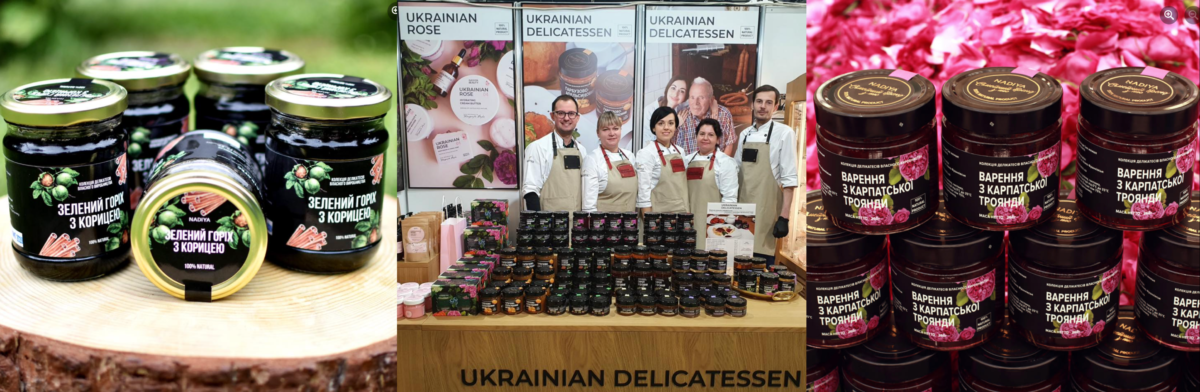 В асортименті – варення з дикої карпатської ружі (троянди) або з волоських горіхів, нектар з лаванди, виноградний галярет (мармелад), чорничний та гарбузово-апельсиновий джем, сироп з бузини або вишні, перетерта з цукром калина. Можна придбати й подарунковий набір із 4 баночок варення. Також в асортименті бренду є цукерки “Трояндове бренді”.