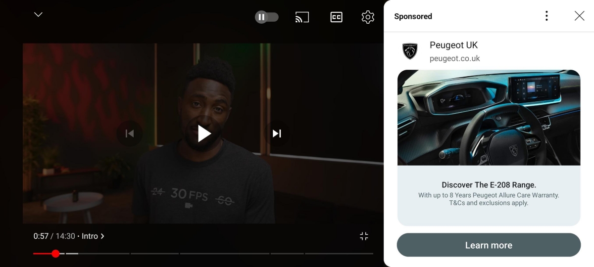 Реклама на YouTube відтепер відтворюється навіть тоді, коли відео стоїть на паузі. Рекламні ролики з’являються збоку екрана.