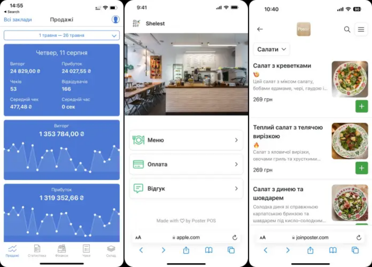 - Інтеграція з агрегаторами, як-от Glovo та Bolt Food.