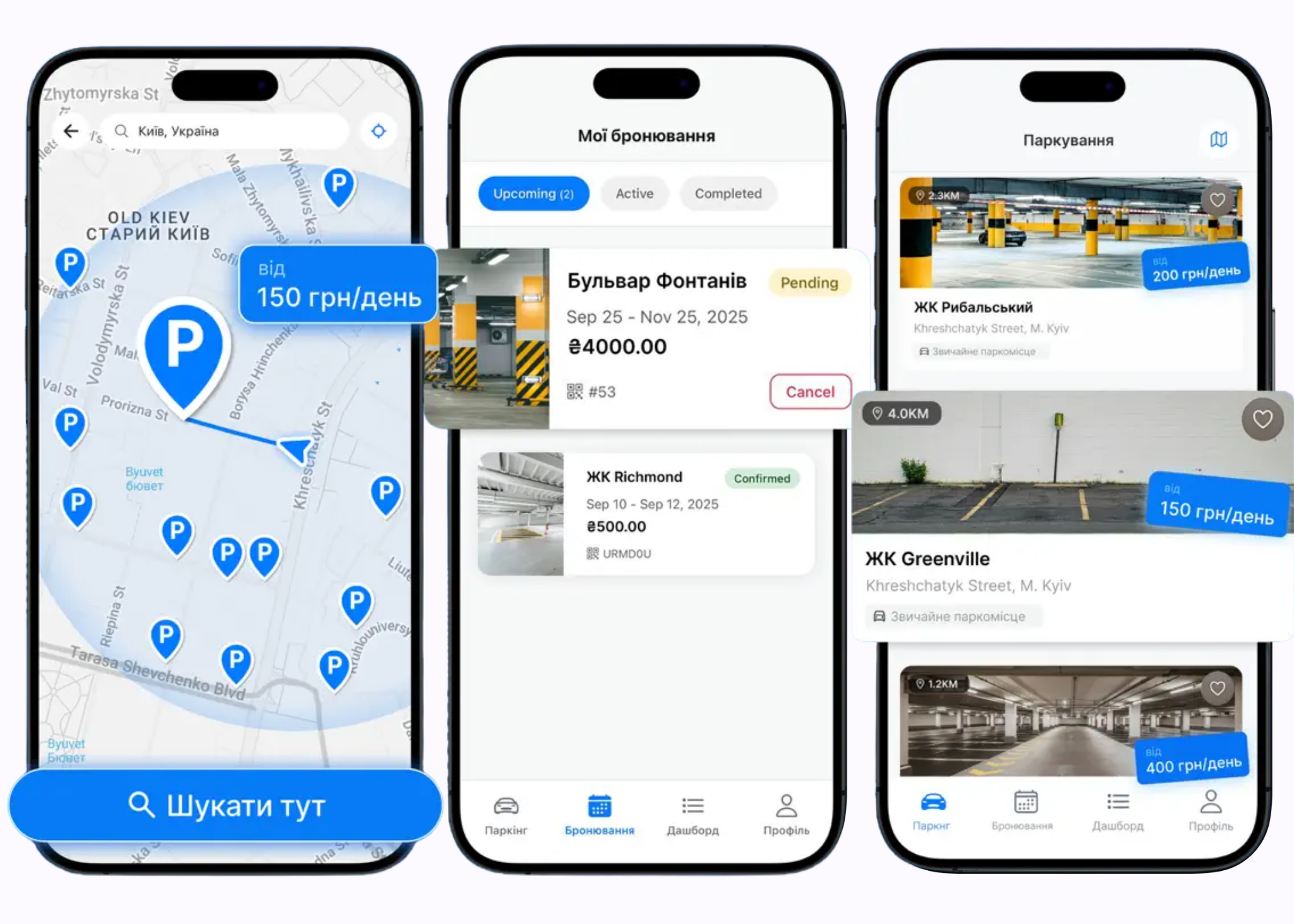 Користувачі можуть обирати короткострокову оренду на кілька годин або днів, а також довгострокову – від одного до шести місяців. Всі паркомісця позначені на інтерактивній карті з фільтрами по ціні, відстані та типу оренди, а оплата проходить безпосередньо через застосунок – Google Pay/Apple Pay або PayPal.