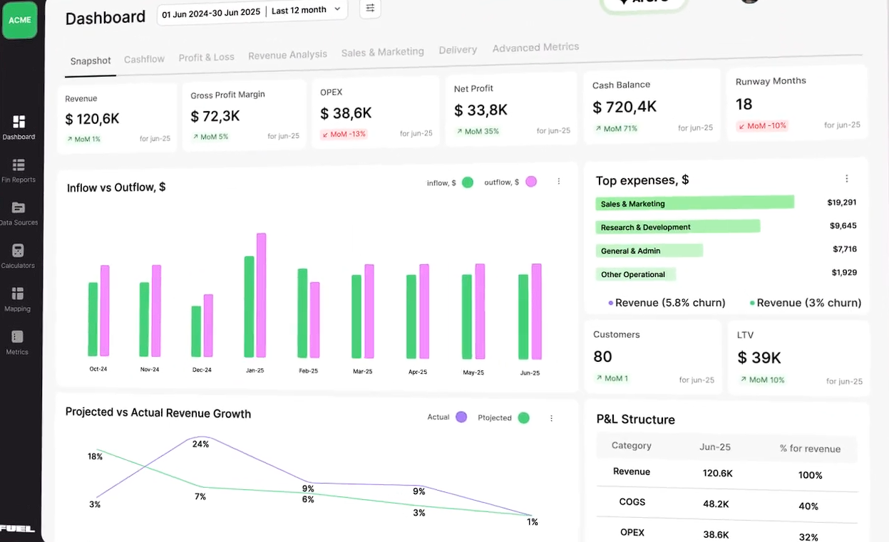 У платформу Fuelfinance інтегрували штучний інтелект AI CFO, який бере на себе функції фінансового директора: аналізує дані, формує дашборди, прогнозує сценарії “what if” та надсилає важливі фінансові сповіщення.