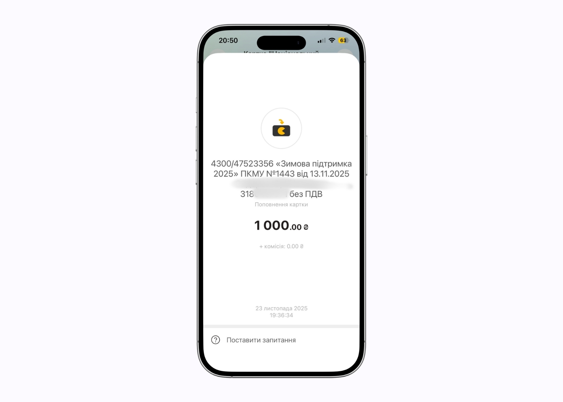 У неділю ввечері почали надходити перші виплати 1000 гривень за програмою зимової підтримки. Гроші почали отримувати ті, хто подав заявки через ДІЮ ще в перший день такої можливості – 15 листопада.