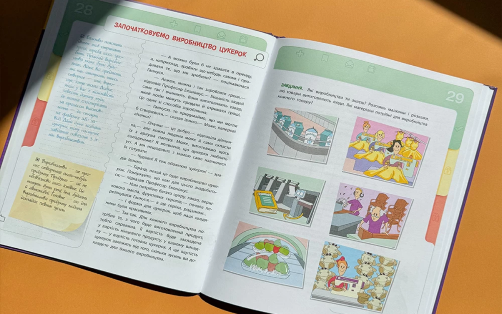 Навчальний посібник, що допоможе дитині поринути у захопливий та водночас складний світ підприємництва, а також розширити межі економічного мислення. Найвідоміші економісти Европи допоможуть учням 8-9 класів стати ближче до розуміння сутності грошей, основ ведення бізнесу, а можливо і зруйнують застарілі міфи про економіку у батьків. Цікаве поєднання інтерактивних завдань та тестів з економічною теорією зацікавить підлітків, які не надто полюбляють читати.