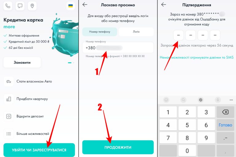 Після завантаження застосунку Ощад24/7 (Android | iOS) необхідно зробити наступні кроки: