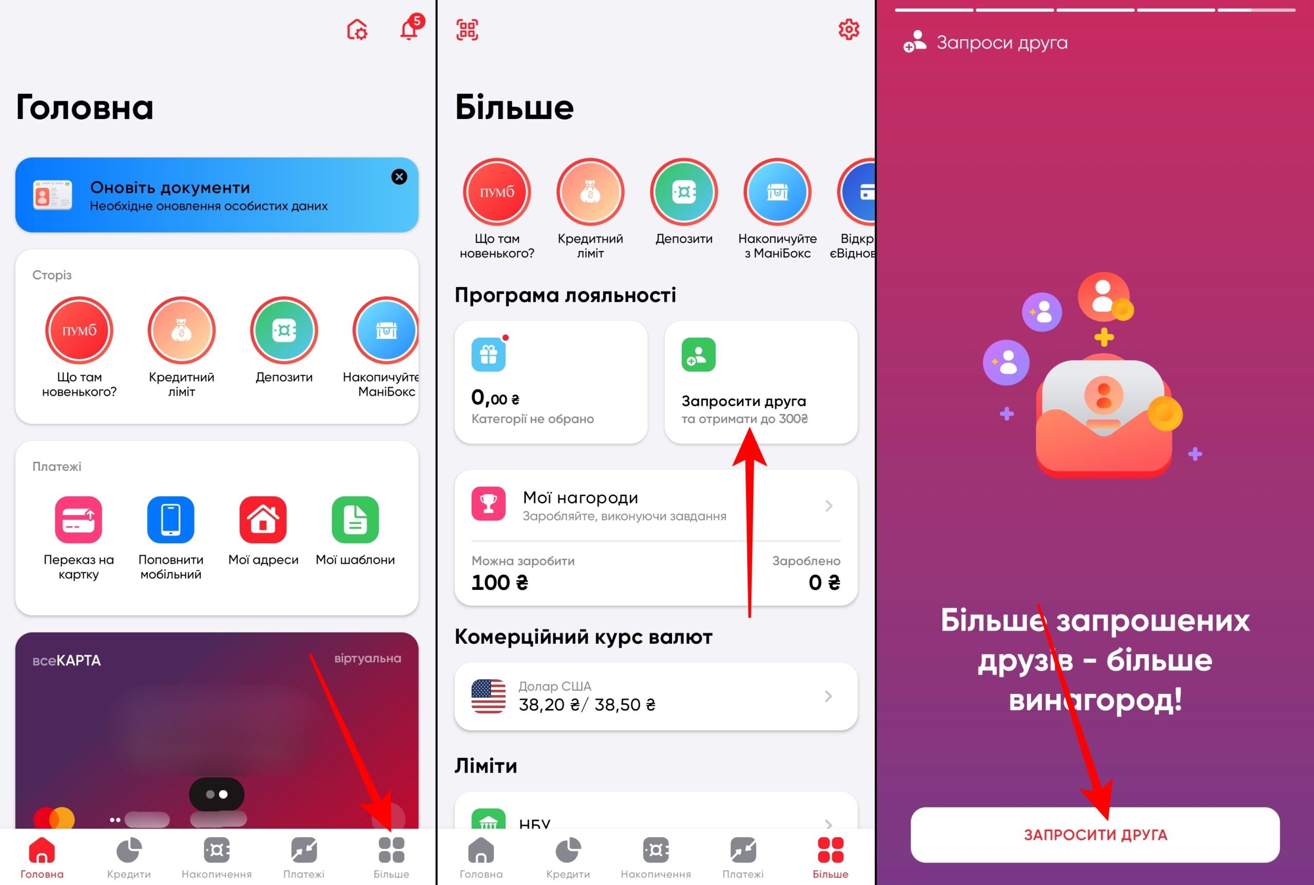 Запрошувати можна друзів без відкритої картки ПУМБ, або існуючих клієнтів банку без кредитних рахунків.