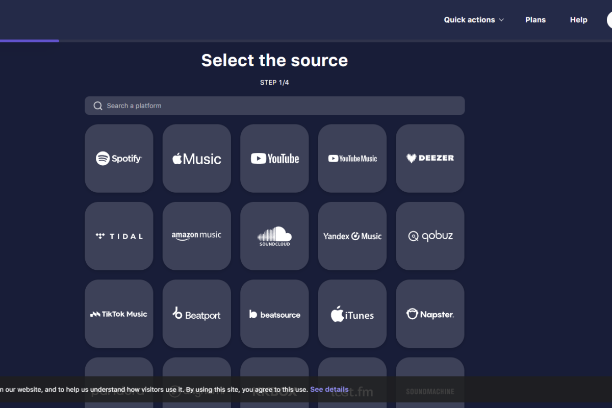 MusConv доступний для iOS або як вебверсія. Після реєстрації необхідно обрати платформу, з якої потрібно перенести пісні, авторизуватися у своєму акаунті, обрати необхідні пісні та зазначити нову платформу для перенесення.