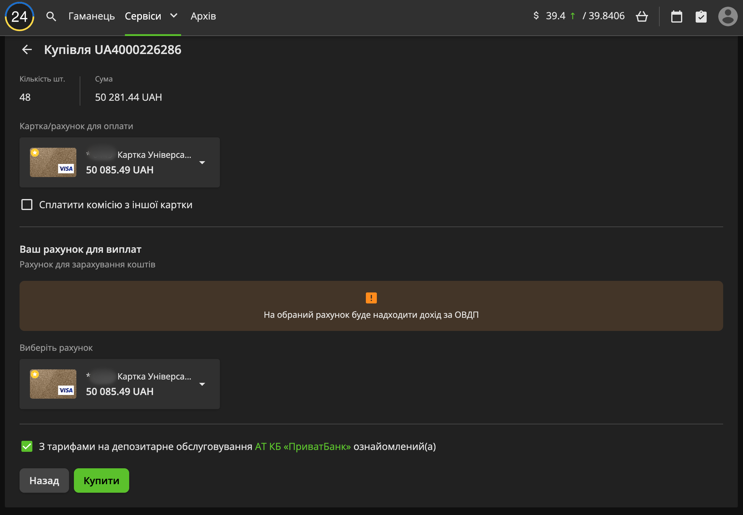 Після придбання ОВД відображатимуться у вкладці “Портфель”.