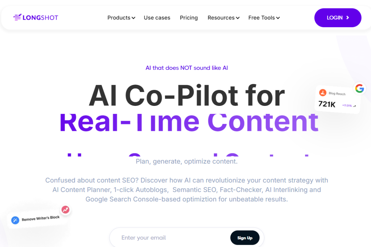 Створювати публікації на актуальні теми та події з урахуванням цільової аудиторії, створювати готові текстові публікації та отримати пропозиції щодо покращення SEO можна за допомогою ШІ LongShot AI.