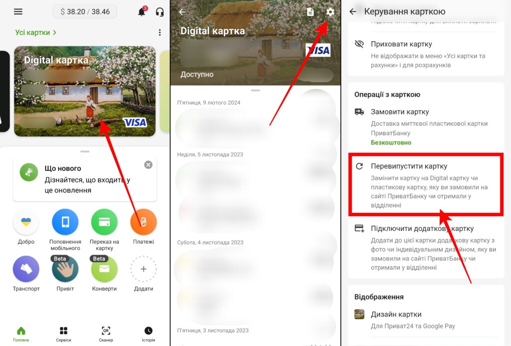 - Обрати “Перевипустити картку”;
