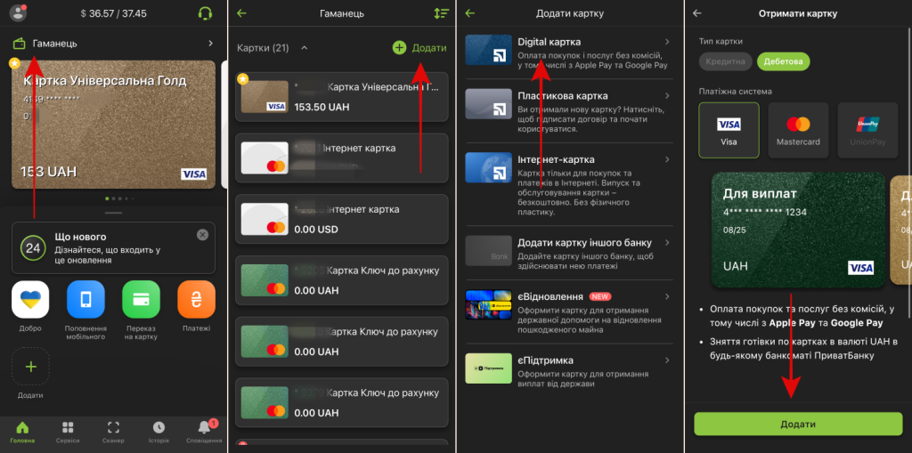 - Натиснути “Додати” та обрати “Digital картка”.