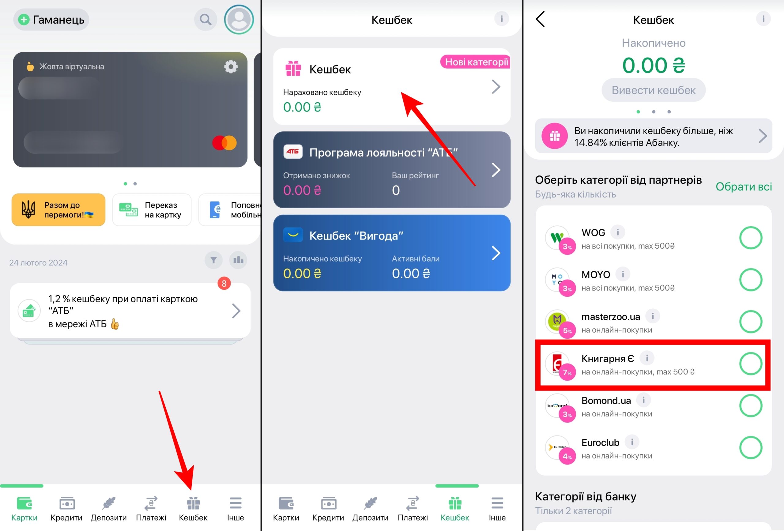 - У розділі “Кешбек від партнерів” обрати Yakaboo.
